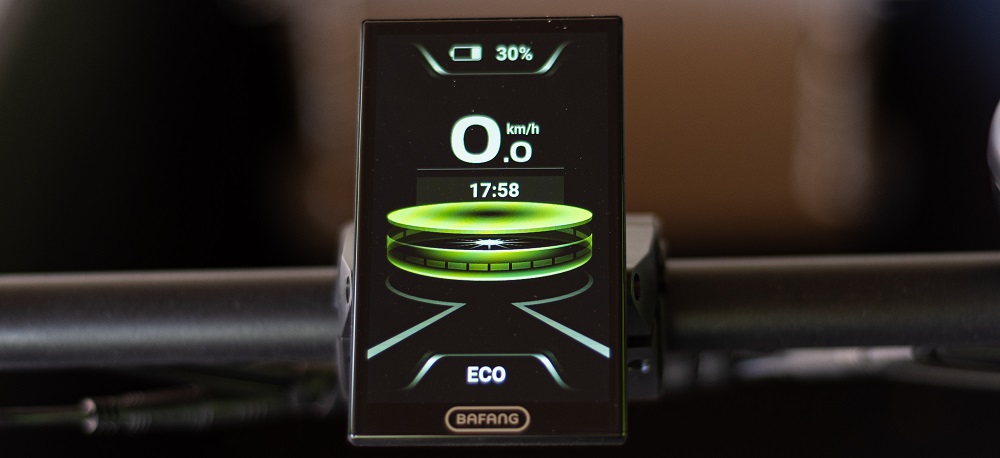 De extra grote knoppen maken het eenvoudig om instellingen aan te passen zonder per ongeluk de verkeerde in te drukken. Het scherpe kleurendisplay is centraal op het stuur geplaatst, waardoor u altijd goed zicht hebt op de informatie. Daarnaast ziet u in één oogopslag hoeveel kilometer u nog kunt fietsen voordat de accu leeg is.
