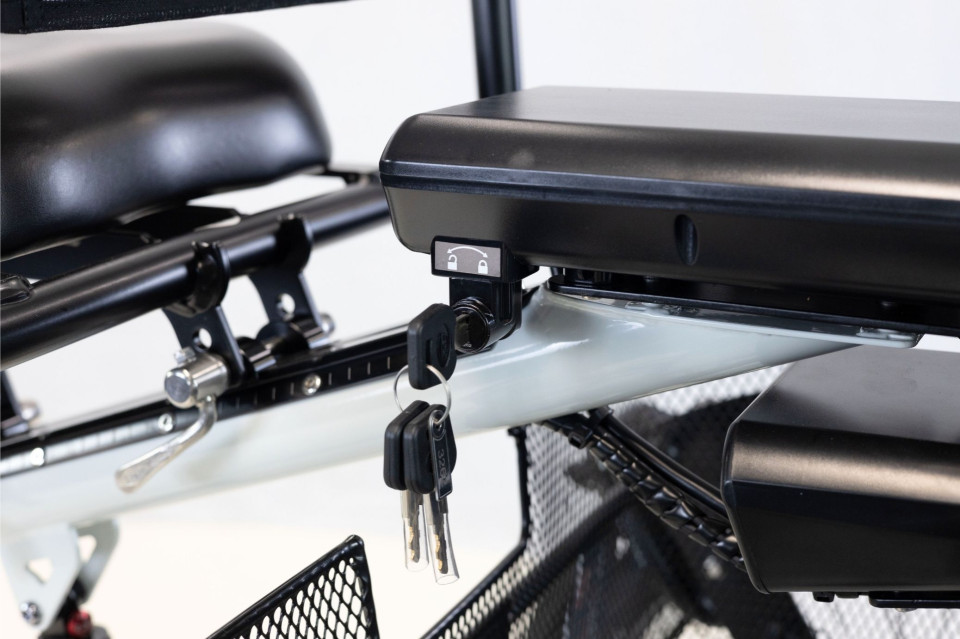 De comfortabele stoel is zeer eenvoudig verstelbaar in hoogte en u kunt ook de hoek van de leuning aanpassen naar persoonlijke voorkeur. Een goede stevige zit is een belangrijke basis om u veilig te bewegen tussen het verkeer. Wilt u graag stoppen? Dan zet u één voet aan de grond terwijl u lekker kunt blijven zitten. Dankzij de zachte rugleuning hoeft u niet bang te zijn dat u last krijgt van uw rug, ook niet bij lange afstanden, en dat is wel zo prettig.