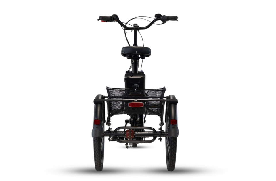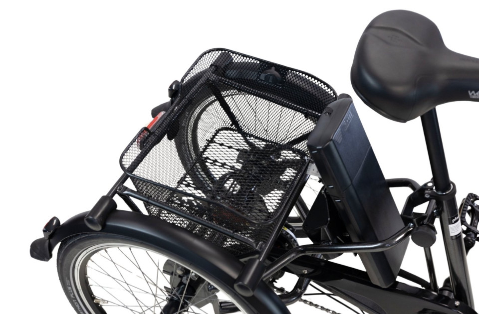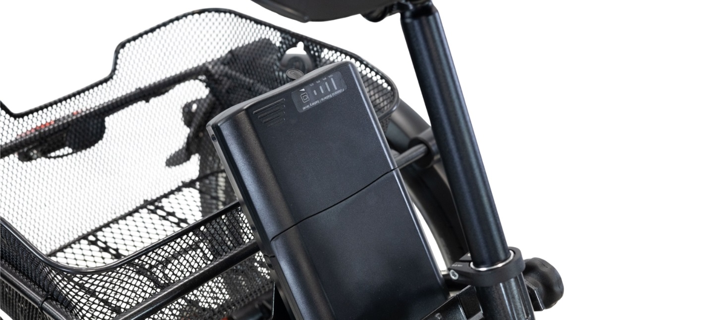 De accu van deze elektrische driewieler is voor uw boodschappenmand geplaatst. Hierdoor kunt u deze zonder te hoeven bukken, gemakkelijk uitnemen om eventueel binnen op te laden of aan de lader te zetten terwijl de accu zich nog in de fiets bevindt. De accu is standaard 324Wh sterk en dat zorgt ervoor dat u tot 40km ver kunt komen op één acculading, en dat is voor de meeste mensen meer dan genoeg. Om verder te komen adviseren wij de 504Wh te selecteren.