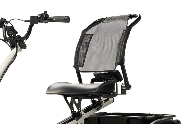 De comfortabele stoel is zeer eenvoudig verstelbaar in hoogte en u kunt ook de hoek van de leuning aanpassen naar persoonlijke voorkeur. Een goede stevige zit is een belangrijke basis om u veilig te bewegen tussen het verkeer. Wilt u graag stoppen? Dan zet u één voet aan de grond terwijl u lekker kunt blijven zitten.