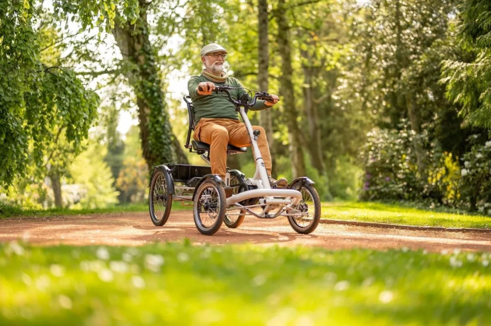 De Van Rixtel Solid geeft u vrijheid op 4 wielen en is het ideale vervoersmiddel voor mensen die graag op een vierwieler willen fietsen. Deze top uitvoering beschikt over de sterkte Bosch Performance Line CX motor en grote 545Wh accu voor lang plezier op één lading zodat ook langere toertochten geen probleem zullen zijn. Tot de opties behoren verder een ingebouwde navigatie, groot licht functie met remlicht achter en 14 versnellingen in de naaf. Dankzij de voor- en achtervering worden trillingen gefilterd voor een soepel en comfortabel rijgedrag. Een groot pluspunt tenslotte is dat deze fiets tot maar liefst 180kg bestuurder + 20 bagage belast mag worden.