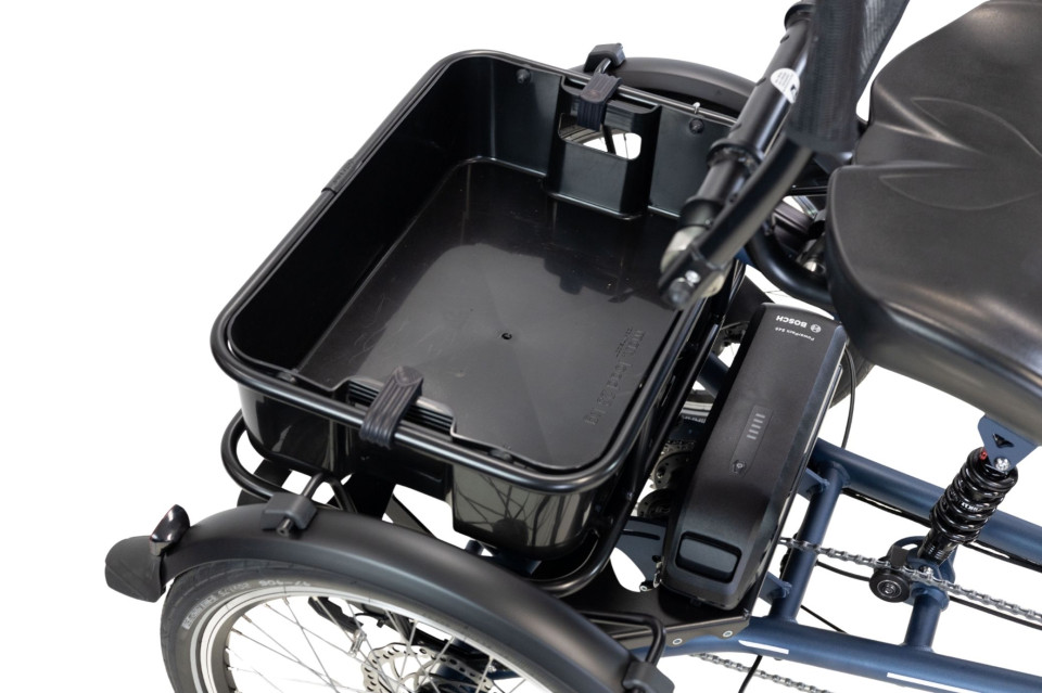De accu van deze elektrische driewieler is boven uw boodschappenmand geplaatst. Hierdoor kunt u deze zonder te hoeven bukken, gemakkelijk uitnemen om eventueel binnen op te laden of aan de lader te zetten terwijl de accu zich nog in de fiets bevindt. Er is nameiljk een extra oplaadpoort op de fiets gemaakt op hoogte zodat het stekkeren erg gemakkelijk gaat. De accu is standaard al 545Wh sterk en dat zorgt ervoor dat u lang kunt genieten op één acculading, tot ruim 120km! Wilt u lange afstanden maken op één acculading? Dan kunt u ervoor kiezen om een grotere accucapaciteit te kiezen.