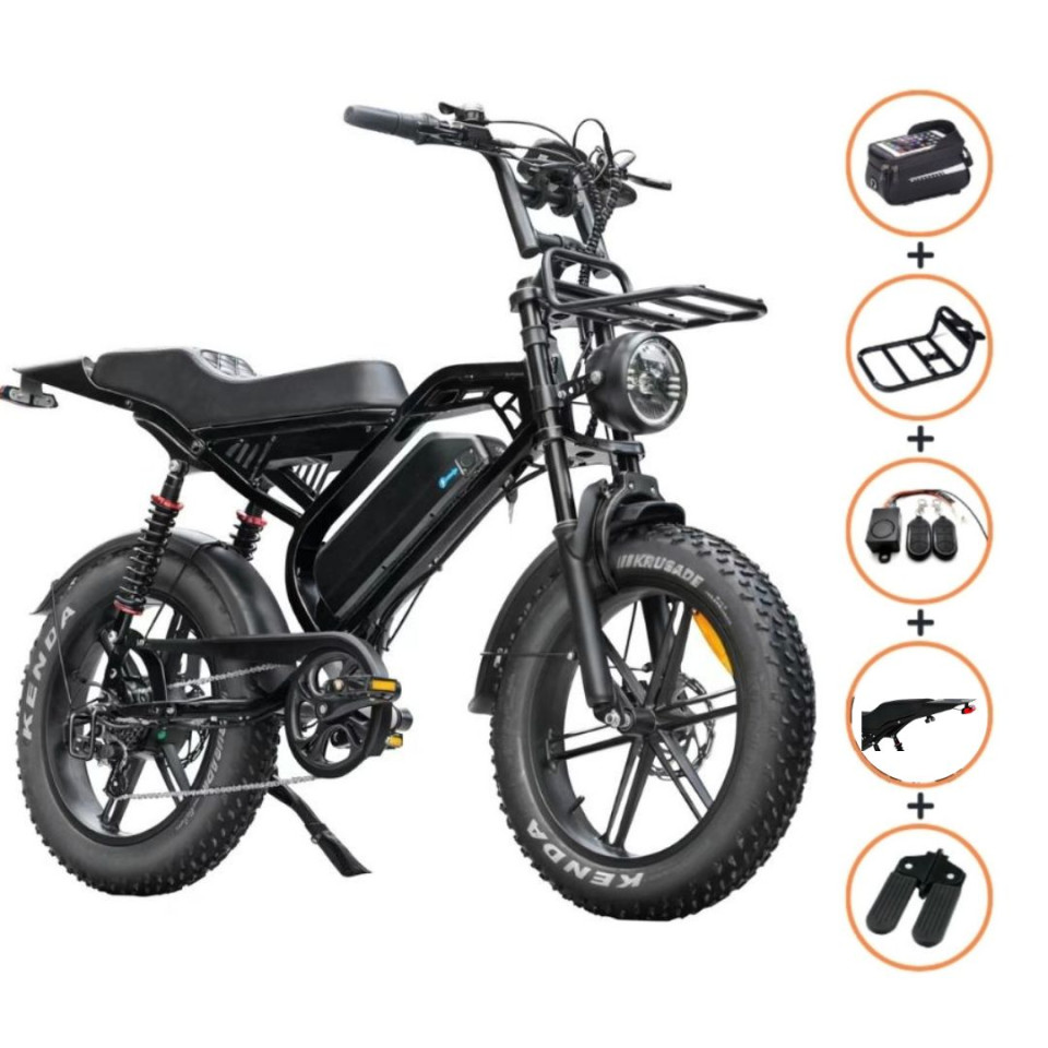 + Uitgevoerd met telefoonhouder, fietspomp, voetstepjes, voordrager & alarm