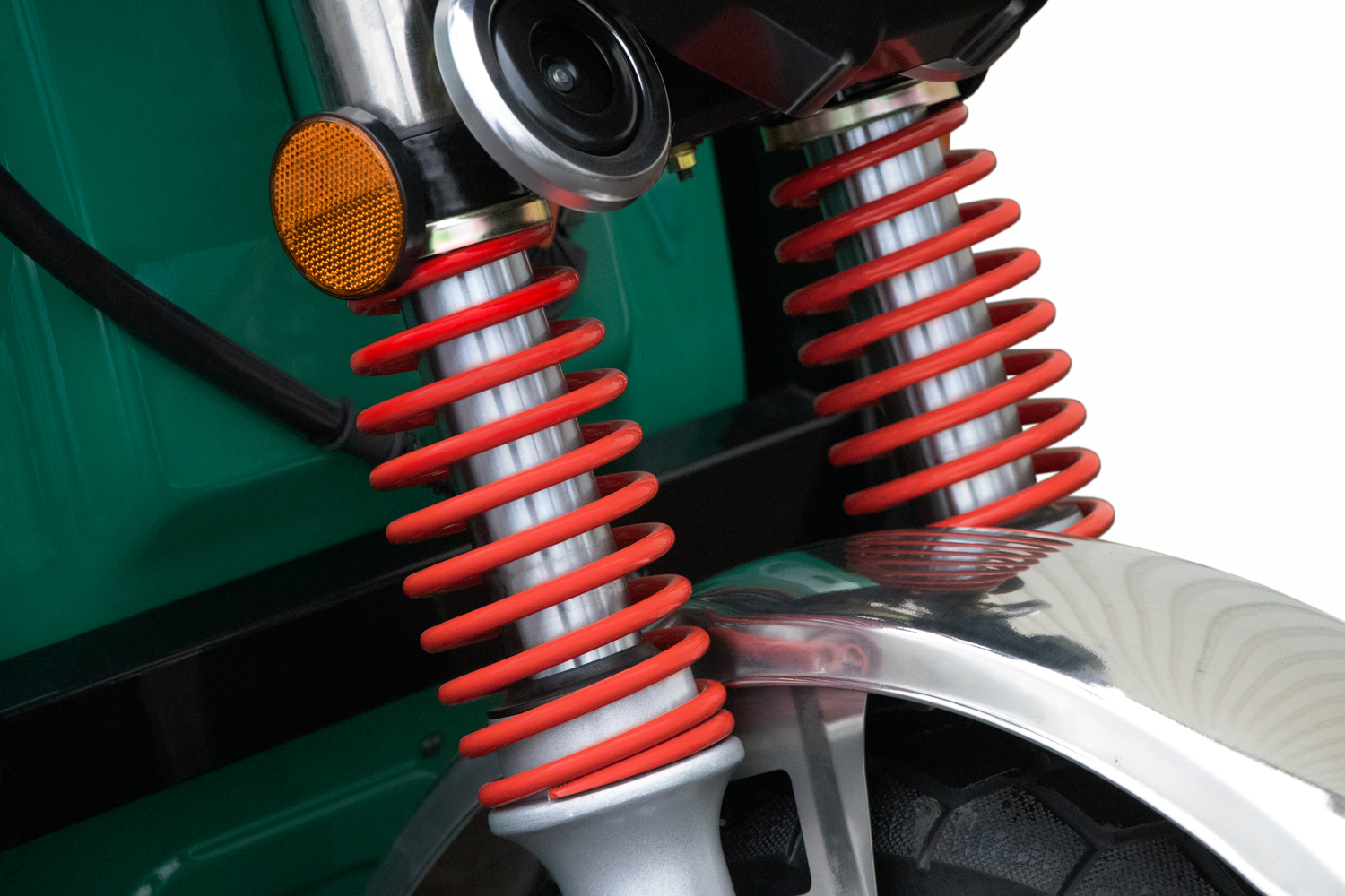 De keuze voor robuuste materialen garandeert dat het veersysteem duurzaam is en bestand tegen zware belasting en langdurig gebruik. Deze vering is speciaal afgestemd op de compacte maar veelzijdige aard van de Geco Moto Truck gXP Mini, die zowel in stedelijke omgevingen als op ruwere terreinen goed uit de voeten kan.