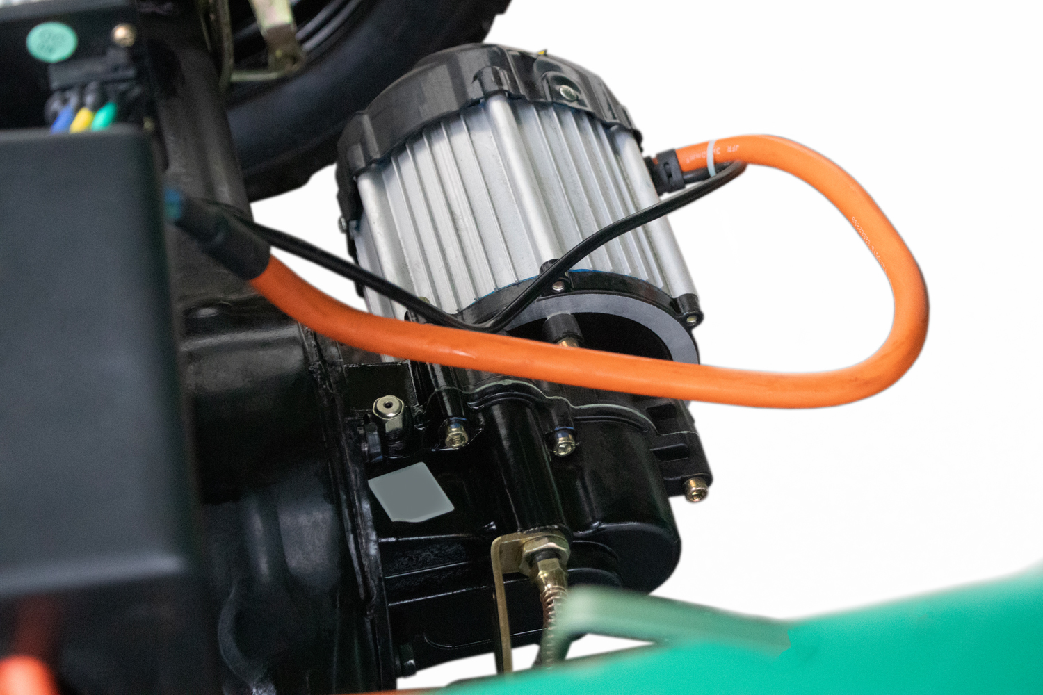 De motor wordt gevoed door de hoogwaardige lithium-ion batterijen en is verbonden met het elektrische systeem van het voertuig via dikke, goed geïsoleerde kabels. Dit zorgt ervoor dat de energie efficiënt wordt overgebracht naar de aandrijving. De motor is ontworpen om stil en soepel te werken, met minimale trillingen en geluidsoverlast, wat de rijervaring aanzienlijk verbetert. Bovendien draagt het compacte ontwerp van de motor bij aan het lage gewicht van het voertuig, wat resulteert in een hogere energie-efficiëntie en langere actieradius.