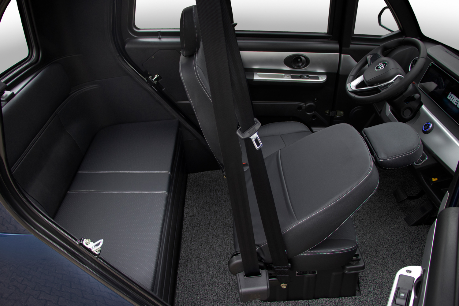 De E-go eK4 biedt comfortabele zitruimte voor maximaal vier personen, wat uitzonderlijk is voor een voertuig van dit formaat. De achterbank is ruim genoeg om twee passagiers comfortabel te vervoeren, terwijl de hoogwaardige bekleding en nette stiksels zorgen voor zowel duurzaamheid als comfort tijdens de rit.