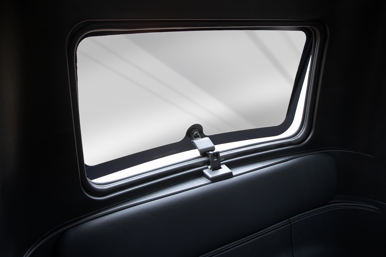 De afwerking rondom de achterruit sluit naadloos aan op het interieur, met strakke lijnen en hoogwaardige materialen die de moderne uitstraling van de E-go eK4 versterken. Het raammechanisme is eenvoudig te bedienen, en de stevige afdichting zorgt ervoor dat het voertuig goed beschermd is tegen weersinvloeden.