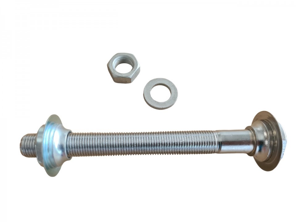 Product : Asbout Carry 3 en Curve 3 + moer (dikte 12mm/ Totale lengte ca. 130mm) Bout diam : 12mm Bout lengte : 130mm Geschikt voor het voorwiel van de Carry 3 en de Curve 3
